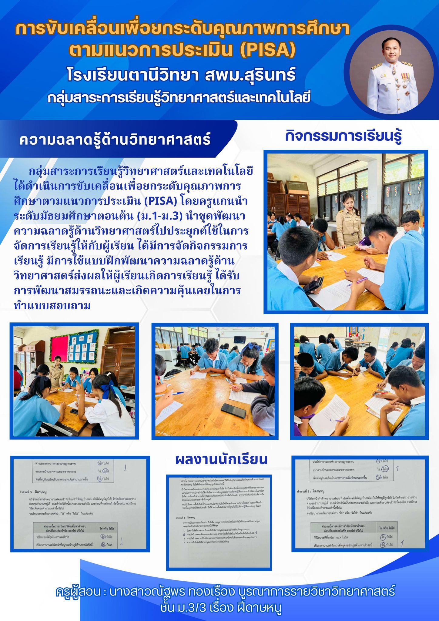 กลุ่มสาระการเรียนรู้วิทยาศาสตร์และเทคโนโลยีจัดกิจกรรมการจัดการเรียนรู้เพื่อส่งเสริมให้นักเรียนได้พัฒนาทักษะที่จำเป็น