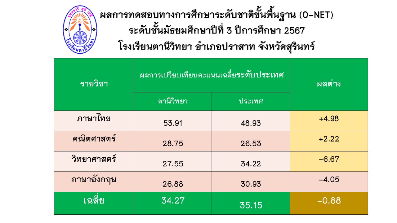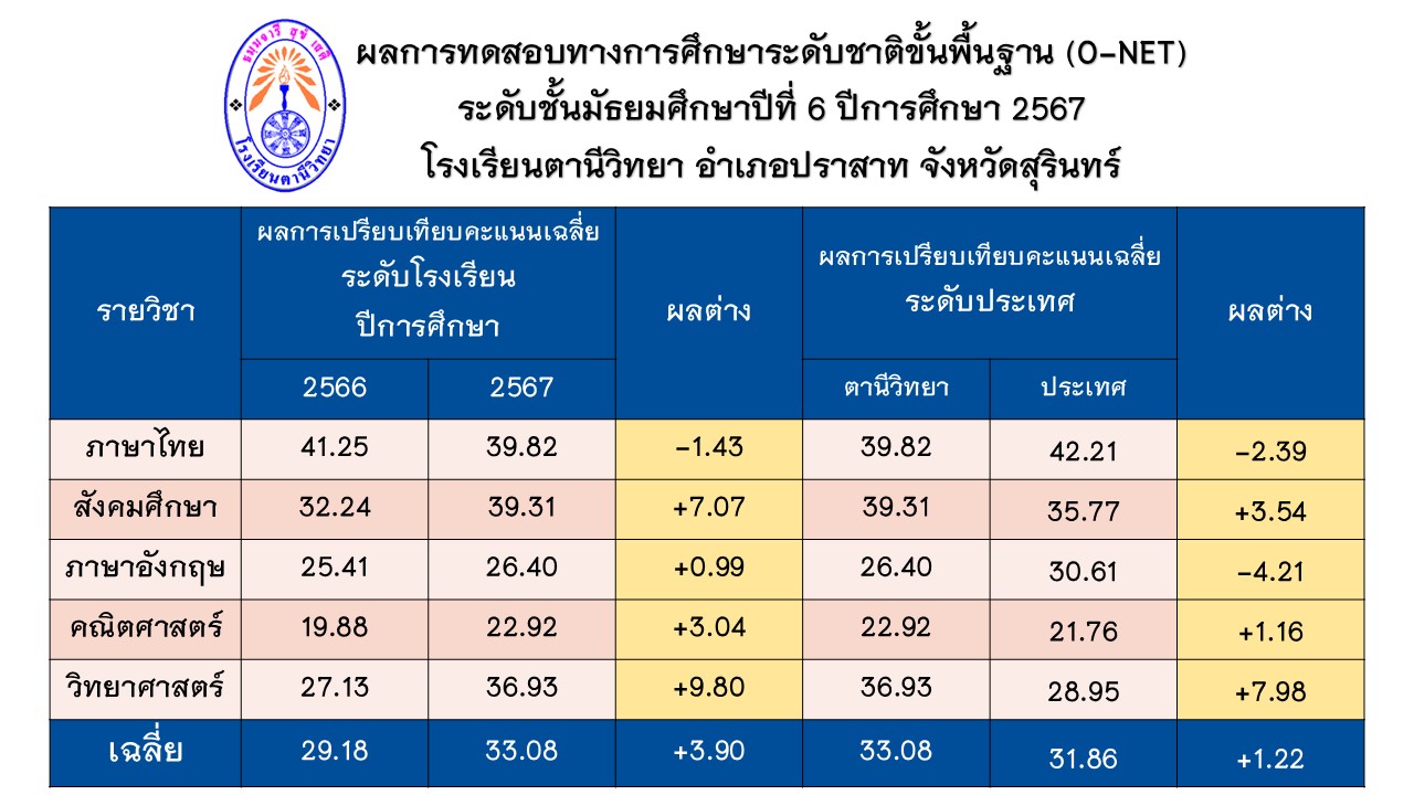 >>คะแนนโอเน็ตปีการศึกษา 2567