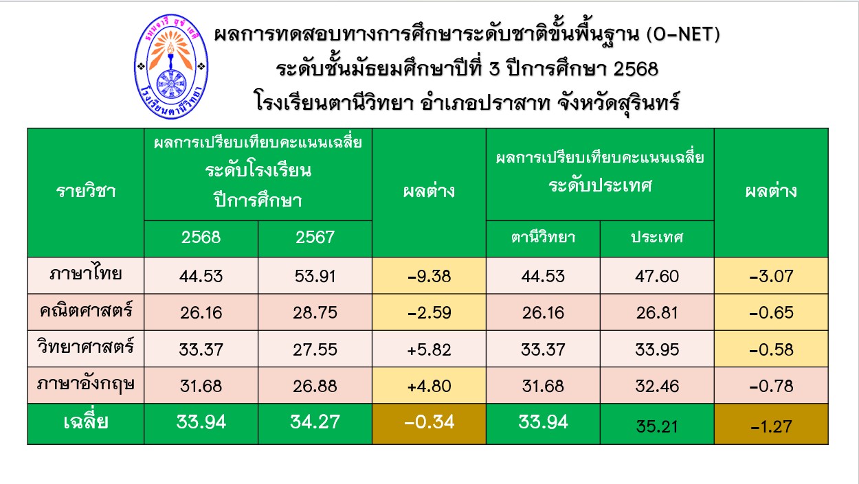 >>คะแนนโอเน็ตปีการศึกษา 2568